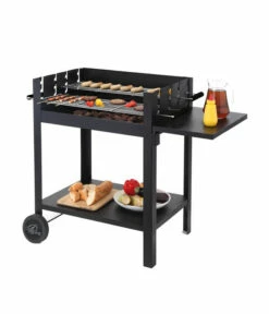 Sie möchten Ihre Familie oder Freunde spontan mit Ihren Lieblingsspezialitäten vom Grill verwöhnen und das möglichst schnell? Oftmals verzögert sich die Barbecue-Freude durch einen langwierigen Aufbauprozess noch etwas: nicht so mit dem tepro Chill & Grill Holzkohlegrill Lambada. Dank seiner patentierten Technik erlaubt das Gerät einen Zusammenbau ohne Schrauben, in gerade einmal drei Minuten ist es betriebsbereit. Aufgrund der beiden höhenverstellbaren, verchromten Grillroste behalten Sie während des Grillvorganges jederzeit die volle Kontrolle über die Hitzezufuhr. Die Kunststoffgriffe erlauben eine Anpassung der Distanz zwischen Grillgut und Holzkohle, im Gebrauch variiert Arbeitshöhe dabei zwischen angenehmen 77 und 87 cm. Mithilfe der zwei Kunststoffräder mit Radkappen verschieben Sie den tepro Chill & Grill Holzkohlegrill Lambada jederzeit an den gewünschten Ort. Für ein hohes Maß an Sicherheit zeigt sich die hitzebeständige, pulverbeschichtete Feuerwanne verantwortlich. Um jederzeit neue Steaks und Bratwürste nachlegen zu können, ist der tepro Chill & Grill Holzkohlegrill Lambada außerdem mit einer praktischen Seitenablage ausgestattet.